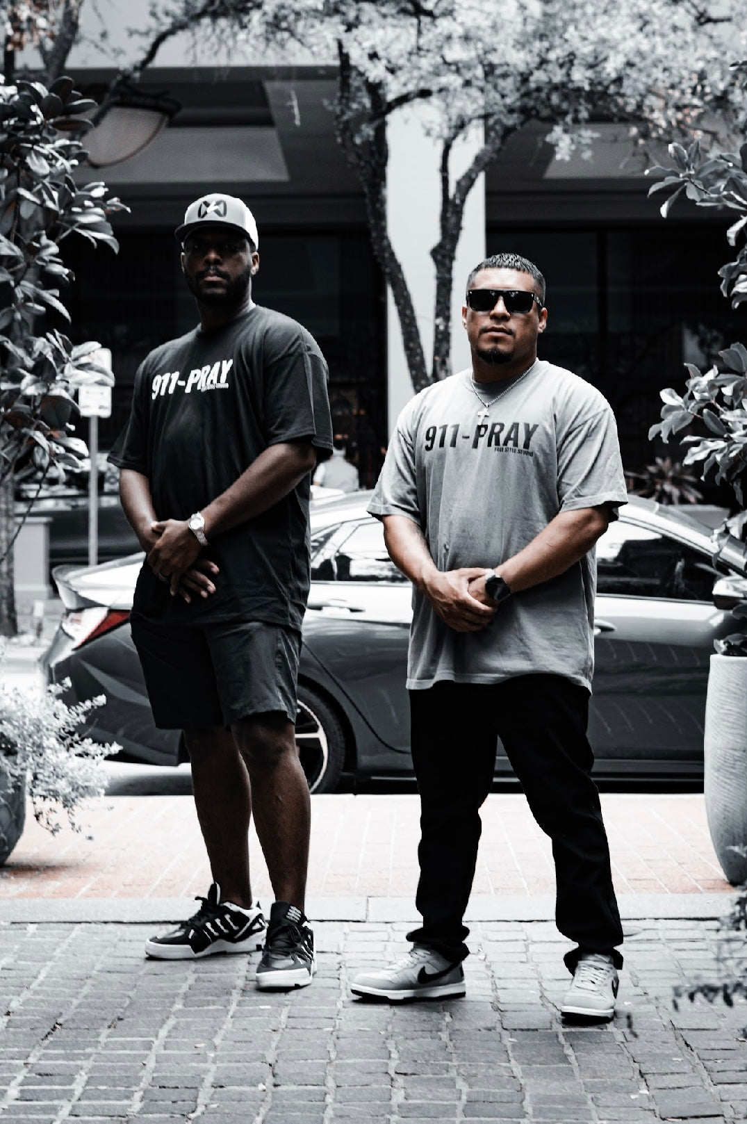 Ian & Chris wearing Faith over Fear / 911-PRAY