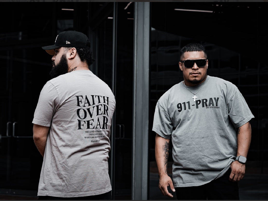 Ian & Chris wearing Faith over Fear / 911-PRAY